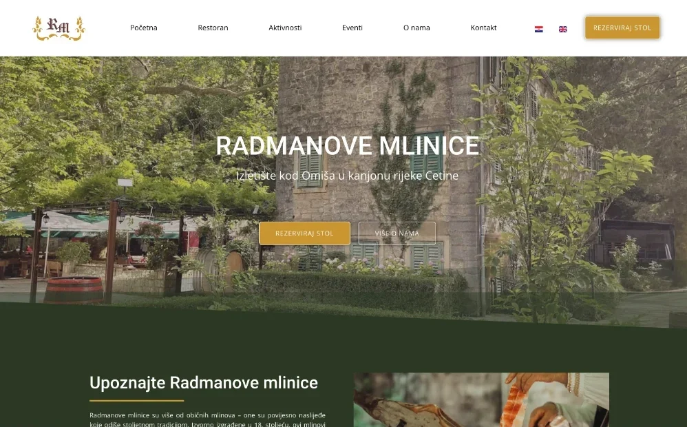Izvedba: Stranica je strukturirana tako da korisnik brzo pronađe informacije koje traži – od jelovnika i lokacije do aktivnosti i evenata, uz dizajn koji prati prirodni ambijent i tradiciju mjesta.