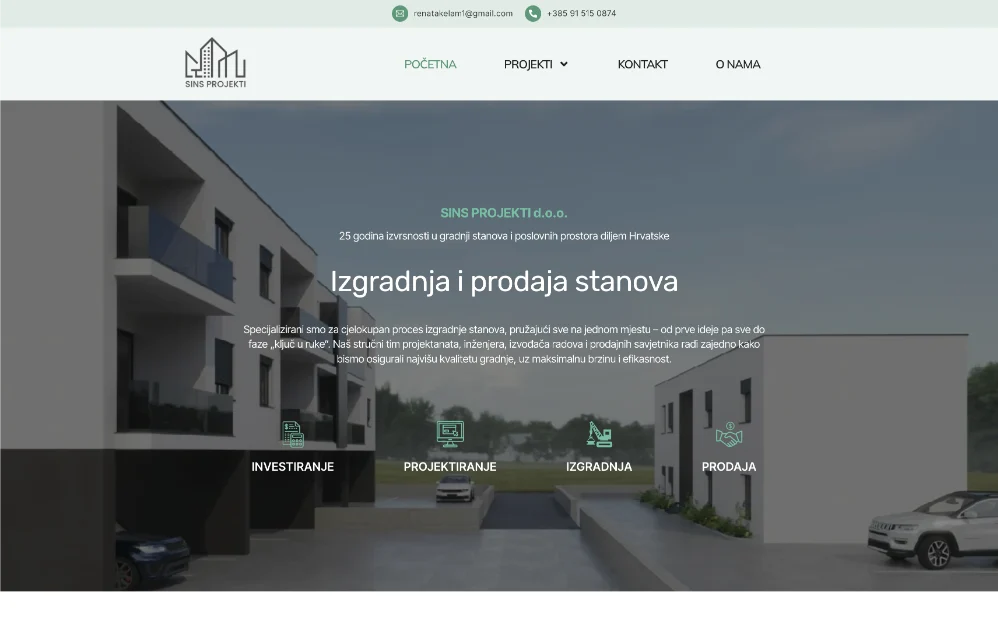 Izvedba: Stranica je osmišljena tako da korisnici lako pronađu sve informacije koje su im potrebne prije donošenja odluke o kupnji nekretnine. Dizajn je jednostavan, jasan i usklađen s tonom koji prati dugogodišnje poslovanje tvrtke.