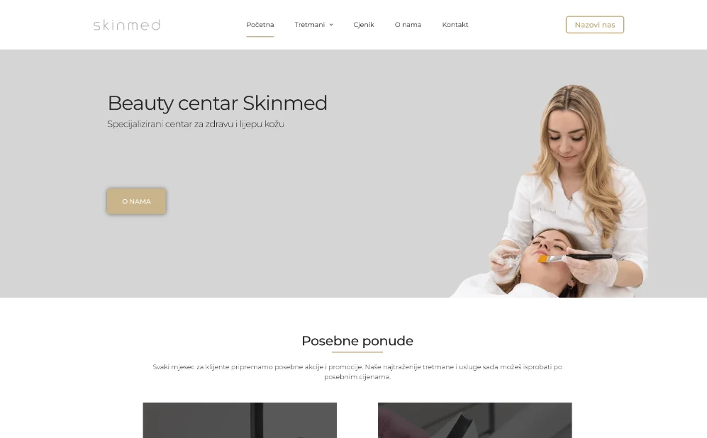 Zadatak: Izraditi modernu, jednostavnu web stranicu za beauty centar, s ciljem jasnog prikaza usluga, cijena i mjesečnih akcija.