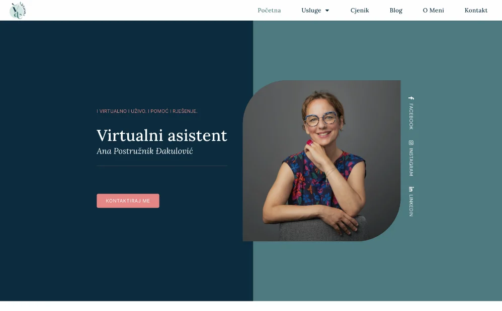 Zadatak: Izraditi web stranicu koja će jasno i profesionalno predstaviti usluge virtualne asistencije te olakšati prvi korak prema suradnji.